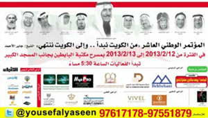 يقام على مسرح مكتبة البابطين المركزية للشعر العربي في تمام الساعة 5.30م، المؤتمر الوطني العاشر (( من الكويت نبدأ وإلى الكويت ننتهي )) وذلك في الفترة من 12-2-2013 إلى 13-2-2013م.