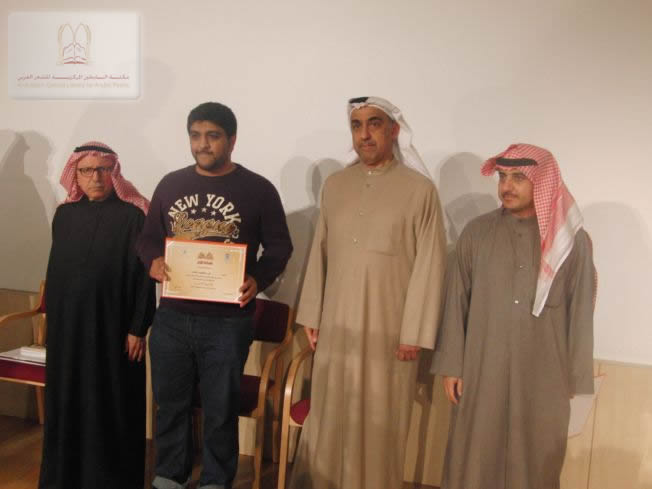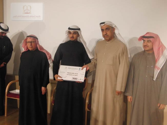 جاسم يعقوب ممثلاً عن الهيئة العامة للشباب والرياضة يقوم بتسليم الجائزة لأحد الفائزين بالمسابقة