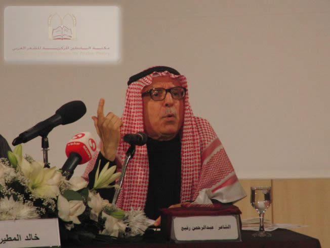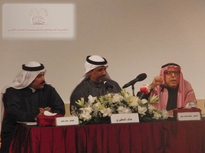 الشاعر البحريني الكبير عبدالرحمن رفيع خلال الأمسية الشعريةالشاعر عبدالرحمن رفيع و عريف الحفل خالد المطيري والشاعر عادل الزيد خلال الحفل الختامي لمسابقة القصة والشعر والتأليف المسرحي