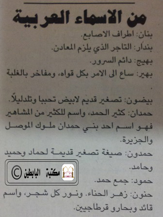 من الأسماء العربية – جريدة الراي العام 1996